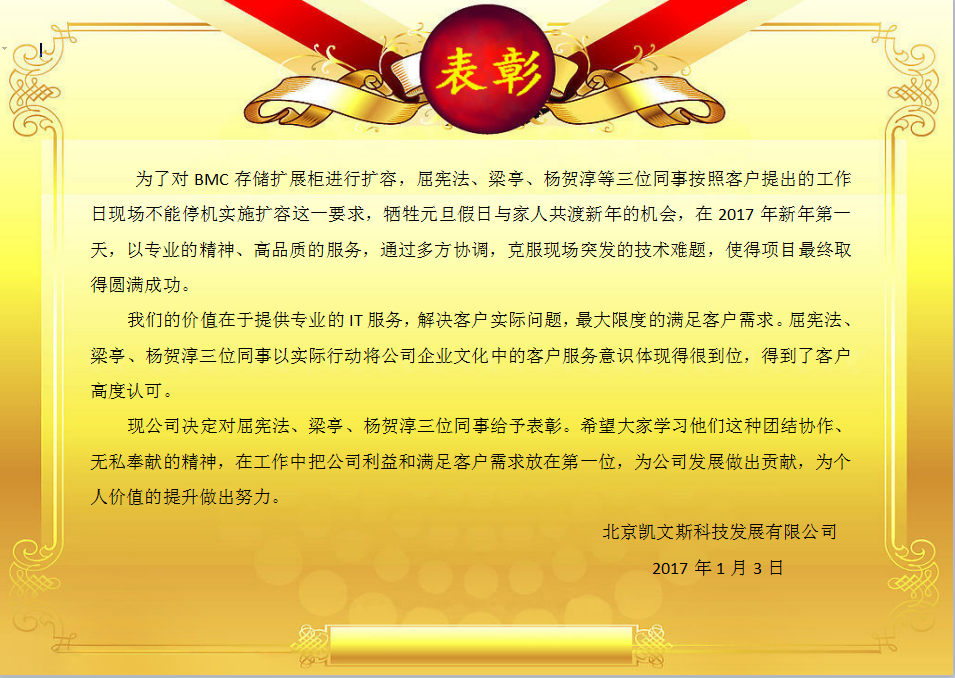 凱文斯在總結(jié)2016的同時也迎來了嶄新的2017,公司對該年度里表現(xiàn)優(yōu)異的員工予以公開展示表彰,鼓勵表現(xiàn)優(yōu)異的員工再接再厲,再創(chuàng)佳績;同時也激勵著其他員工,創(chuàng)優(yōu)爭先,努力在提升、實現(xiàn)自身價值的同時也為公司創(chuàng)造最大價值。